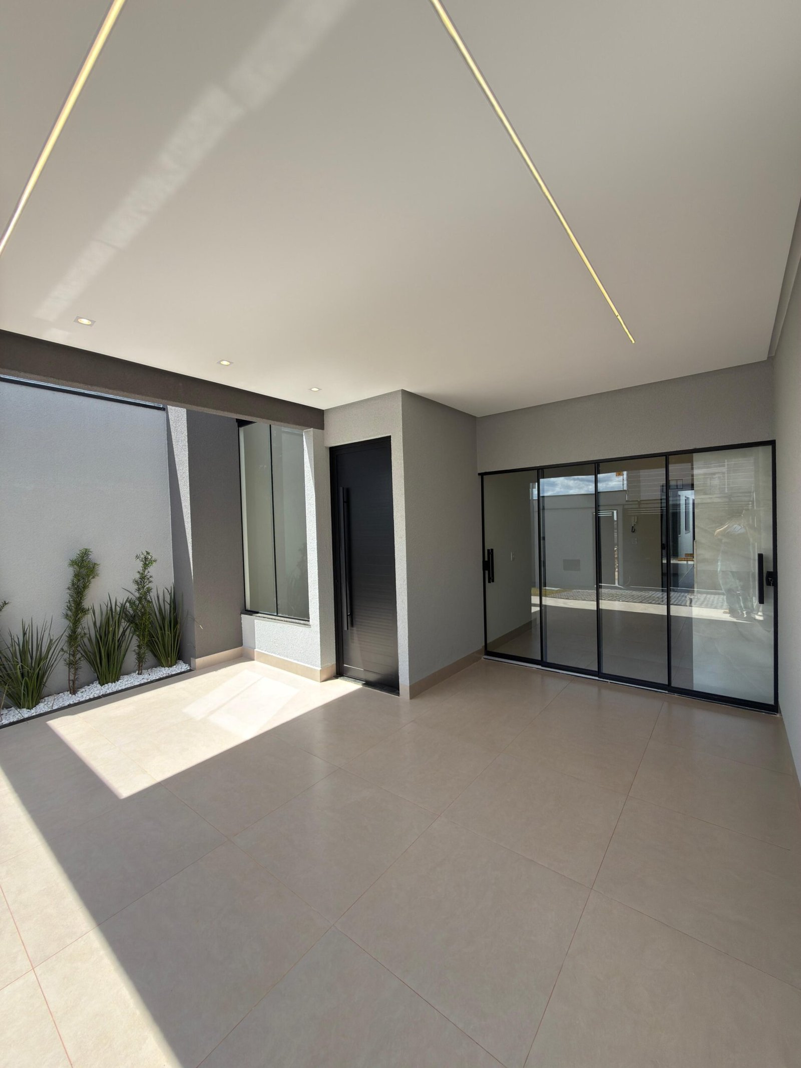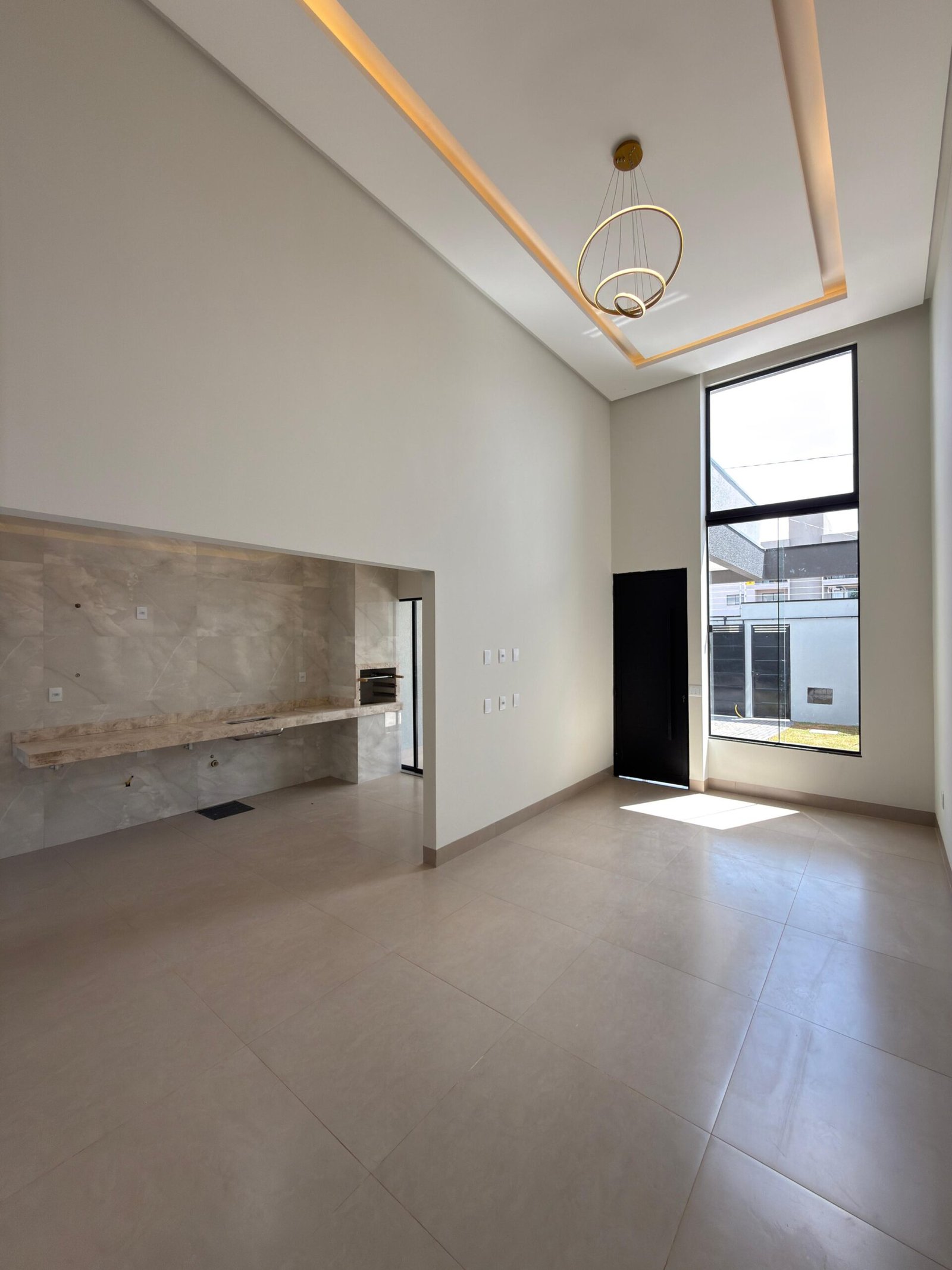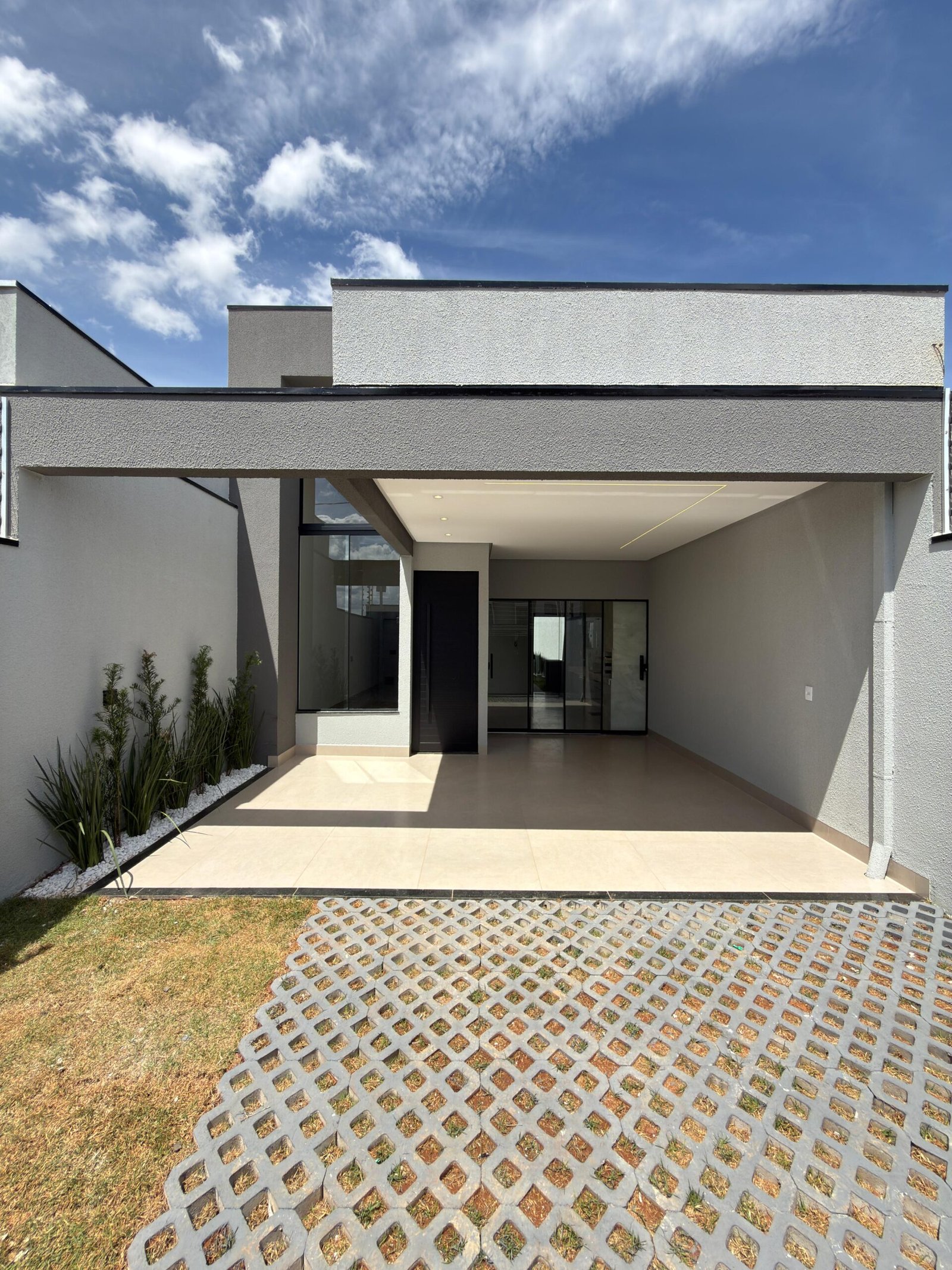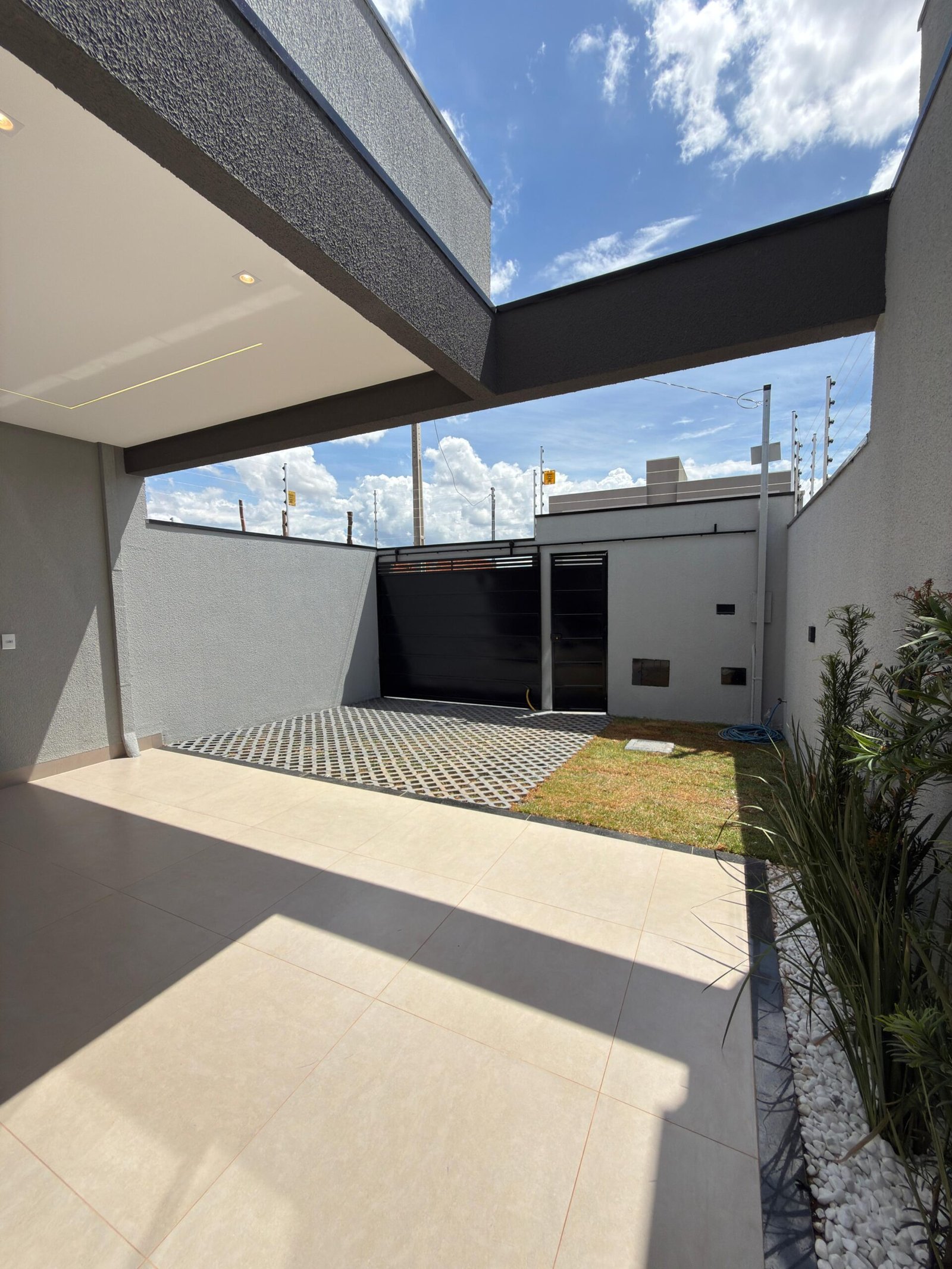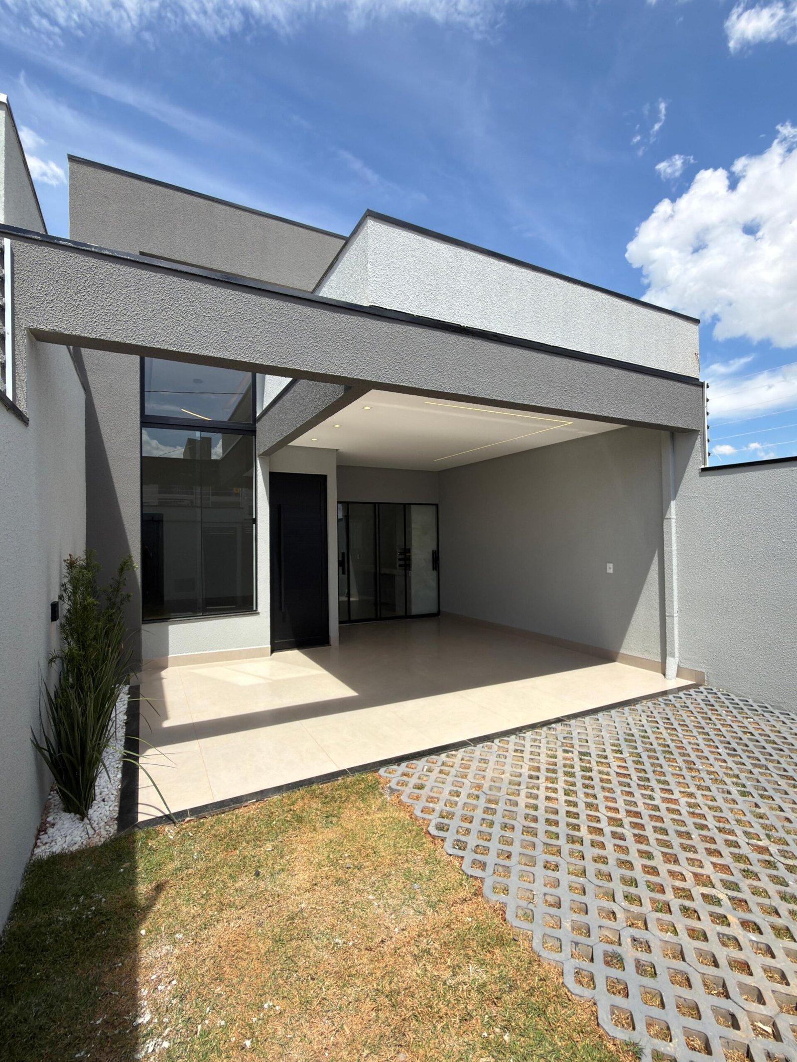 Imóvel no Residencial Campos do Jordão – Anápolis/GO, com 105 m² de construção em lote de 150 m². São 3 quartos (1 suíte), sala com pé-direito duplo, cozinha gourmet com churrasqueira, área de serviço, garagem e jardim. Acabamento premium com porcelanato, iluminação em LED, paisagismo, cerca elétrica, interfone, gás encanado e preparação para ar-condicionado.